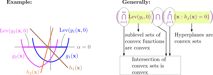where \(f,g_1,\ldots,g_m:\mathbb{R}^n \to \mathbb{R}\) are convex functions and \(h_1,h_2,\ldots, h_p:\mathbb{R}^n\to \mathbb{R}\) are affine functions.