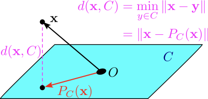 Returns the vector in \(C\) that is closest to input vector \(\mathbf{x}\).